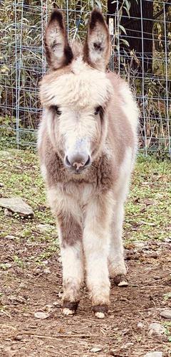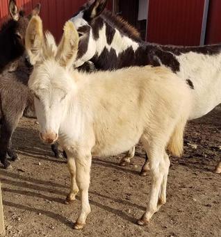 Morgane is going into early retirement. She is a beautiful rare ivory and she is super gentle. She would make an excellent horse farm ambassador or therapy donkey!